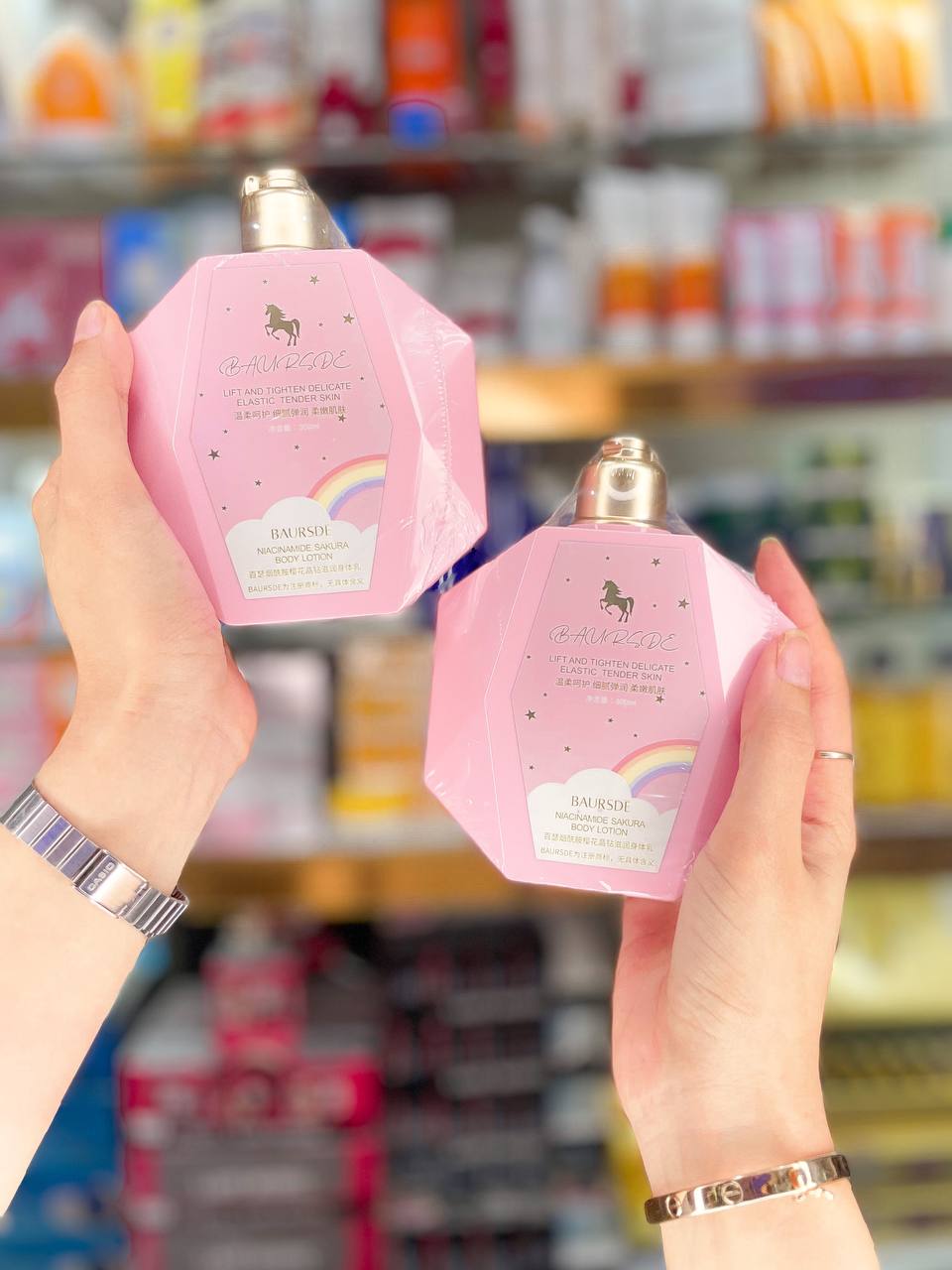 لوسیون بدن یونیکورن Baursde، سحر و جادوی لطافت را به پوست شما هدیه می‌دهد! با فرمولاسیون غنی و حاوی عصاره شکوفه گیلاس، این لوسیون مناسب انواع پوست است و به سرعت جذب می‌شود. تجربه‌ی نرمی و شادابی با رایحه‌ای دلنشین. همین حالا پوست خود را به دنیای افسانه‌ها ببرید! حاوی عصاره و عطر ماندگار ساکور اساکورا: شکوفه گیلاس روشن کننده قوی پوست شاین ویژه مجالس و مهمانی حفظ رطوبت پوست و ماندگاری 24 ساعته از بین برنده چین و چروک بدن آبرسان عمیق پوست